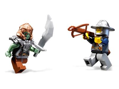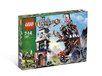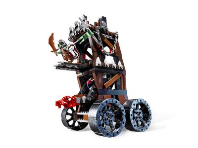 The knights have captured a troll warrior and locked him in the prison tower, but a fearsome troll siege is underway to rescue him! Defend the castle with two armored knights against three troll warriors. Battle the rolling siege tower, equipped with a swinging dragon-headed battering ram to smash through the castle wall and a pull-string bridge to reach the prison. The tower includes flick-fire missiles and wide wheels for mobility. Storm the fortress, release the captive, and clash in an epic medieval siege!