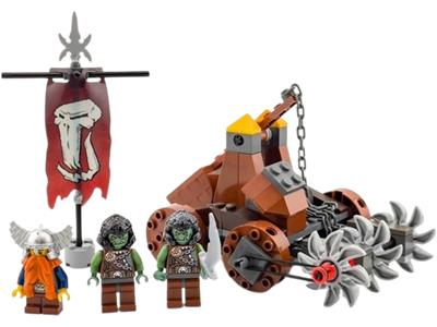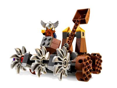 The dwarven kingdom faces a siege from evil troll warriors! Defend the realm with a cleverly designed mining battle-wagon, featuring triple spinning blades at the front and a powerful catapult. Pull the chain to launch projectiles and fend off the invaders. This set includes a dwarf miner and two troll warrior minifigures for epic battles. The wagon itself measures 4.5 inches (11 cm) long and 3.5 inches (9 cm) wide.