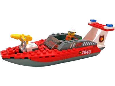 Racing to the rescue, the courageous firefighter speeds across the water in his powerful boat. Upon arrival, he quickly extinguishes the flames with his high-pressure water cannon.
