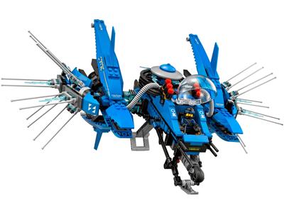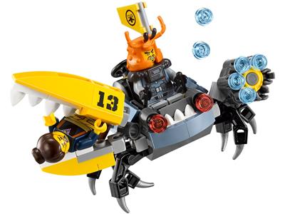 Speed to the rescue with Jay's Lightning Jet! Save Ed and Edna from the shark army's crab in this thrilling LEGO NINJAGO set. The jet features a handle for easy play, an opening cockpit, a spring-loaded shooter, and a trigger-activated rotating electro-disc. The crab has posable legs, a snapping pincer, and a rapid shooter. Includes six minifigures: Jay, Ed, Edna, Crusty, Jelly, and a Shark Army Thug, each with unique weapons like a spiked flail, fish chainsaw, stud-shooter, and fish hammer.