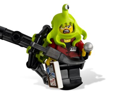 The Alien Mothership hovers over the city skyline, its massive outer disks spinning with an eerie hum. A glowing claw descends, aiming to abduct the reporter below. She must dodge to avoid capture and make it to the nightly news. Includes two minifigures: a fearless reporter and an alien commander. The UFO features real spinning disks, a sound brick that plays eerie alien noises, and an abducting claw to lift minifigures. Attack civilians with the alien clinger and start the invasion. Set measures 19 inches wide, 19 inches long, and over 4 inches tall.