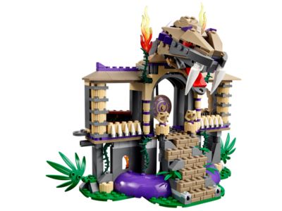 Deep in the jungle, Jay is held captive by the Anacondrai. Follow Lloyd's map to their temple, but stay alert—Kapau'rai guards the entrance with his Anacondrai Blade, and Zugu stands ready with a crossbow. Navigate through treacherous traps: avoid hidden spring-loaded shooters in the stairs, dodge poison balls dropping from a serpent's mouth, and watch for a sudden trapdoor. Explore the caves to discover a second map that reveals the path through the Anacondrai Temple. Carefully cross the suspension bridge to reach the prison tower and rescue Jay. This set includes five minifigures—Lloyd, Jay, Chen, Kapau'rai, and Zugu—each with assorted weapons and accessories.