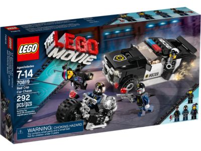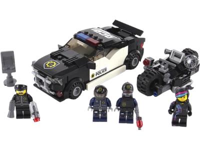 Experience the thrill of the chase in THE LEGO® MOVIE™ Bad Cop Car Chase! Join Master Builder Wyldstyle as she races to escape Bad Cop and his relentless Robo SWAT team. With Bad Cop behind the wheel of his Super Secret Police car and a Robo SWAT rider armed and ready on a tactical motorcycle, every moment is packed with danger. Dodge incoming fire from Bad Cop’s stud shooter, speed to safety, and watch as frustration takes over. This action-packed set comes complete with 4 minifigures—Wyldstyle, Bad Cop, and 2 Robo SWATs—each equipped with weapons and accessories for endless adventure.