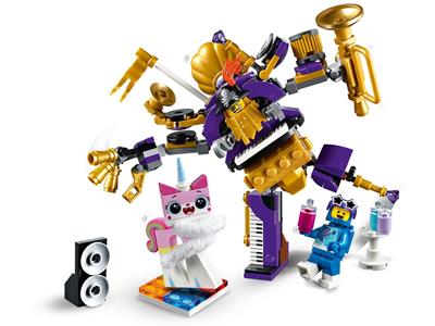 Ignite the ultimate celebration with the 70848 Systar Party Crew set, inspired by THE LEGO® MOVIE 2™. This dynamic playset brings the film's vibrant energy to life, featuring the highly posable One-Man-Metal-Band mech, complete with a built-in MetalBeard minifigure head, gripping hand, and intricate musical instrument details. Dress up Stardust Benny with exclusive star glasses and transform Unikitty into Disco Kitty with a fluffy fabric feather boa. Build a multicolored dancefloor, a booming loudspeaker, and a table with brick-built smoothie drinks to set the scene for endless imaginative play. Perfect for recreating favorite movie moments or inventing new party adventures, this set is a must-have for young fans.