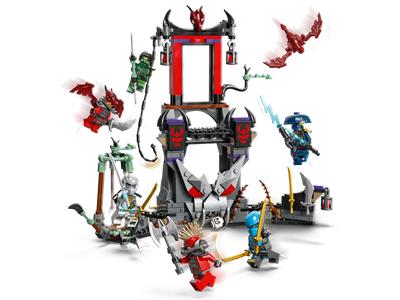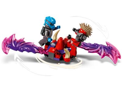 Ninja-loving kids can bring epic good vs. evil battles to life with this LEGO NINJAGO Dragonian Storm Village Set, featuring Zane, Nya, an exclusive Rogue, an exclusive Morro, a Dragonian Warrior, and a Dragonian Scout, all equipped with ninja weapon accessories. The battle arena includes a cage, retractable bridge, pit with a skeleton, climbing rope, and a spinner toy for two characters, inspiring hours of role play based on season 3 of NINJAGO Dragons Rising.