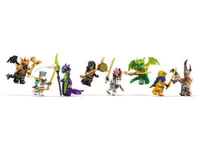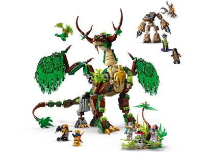 Boys and girls ages 9+ can build the LEGO NINJAGO The Dragon of Life (71859) and recreate scenes from season 4 of the NINJAGO Dragons Rising TV show. This dragon toy features posable wings, jaw, head, neck, legs, ankles, claws, and tail, plus a saddle for a minifigure. The set includes a side build with a tree and a spinning plant that hides a golden sword accessory, along with a posable mini mech with a cockpit. It also comes with 8 minifigures: Zane, Sora, Arin, dragon forms of Lloyd and Cole, and villains Acid Monster, Earth Monster, and Loyalist Leader. Builders can use the LEGO Builder app with 3D zoom, rotation, and tracking features.