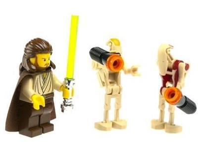 This set comes complete with all parts, minifigures and instructions. It has NO box. There is some light fraying around Qui-Gon's cape but otherwise it's good. |