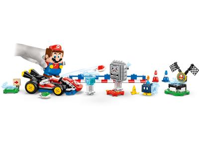 Kids can design their own racetrack and team up with LEGO Mario in his Standard Kart for interactive races with this playset. The set includes an interactive LEGO Mario figure and a kart with drifting action and a shell-launcher. Build a track using the start area, connectible barriers, traffic cones, and a winner's circle. As you drive, LEGO Mario triggers authentic Mario Kart sounds and effects, collects digital rewards from the Item Box, and reacts to different colored plates while facing off against a Bob-omb and Thwomp. Expand the fun with other LEGO Super Mario: Mario Kart sets (sold separately). Instructions are included in the box or via the LEGO Super Mario app.
