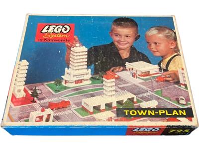 Complete with all ca bricks and waffle plates. All cars, trees, signs included. inlays present. Townplan in good condition (with some discoloration). Box in fair condition (usual faded wear). |