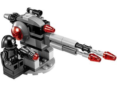 Prepare the Death Star Troopers for battle over Yavin 4 with this new battle pack. Help Imperial Royal Guards and Death Star Gunners repel Rebel attacks using never-before-seen blasters with a shooting function and a powerful laser cannon with flick missile. Includes 4 minifigures with weapons: 2 Imperial Royal Guards and 2 Death Star Gunners, plus a Death Star laser cannon with rotating seat and a flick missile. Weapons include 2 vibroactive force pikes and 2 new blasters. The laser cannon measures over 3 inches high, 5 inches long, and 2 inches wide.