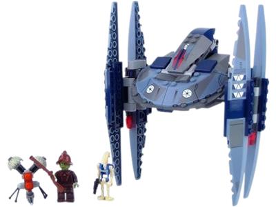 Take control of the Separatist Vulture Droid above Coruscant. Launch the dual spring-loaded shooters and release the Buzz Droid to cripple enemy craft. Then, transform to walking mode for ground combat. This set includes a Neimoidian Warrior, a Buzz Droid, and a Pilot Battle Droid with a blaster pistol. It features a poseable head, space for a pilot, and measures over 6 inches high. Recreate iconic battles from *Star Wars: Episode III Revenge of the Sith* and combine it with other sets for larger conflicts.