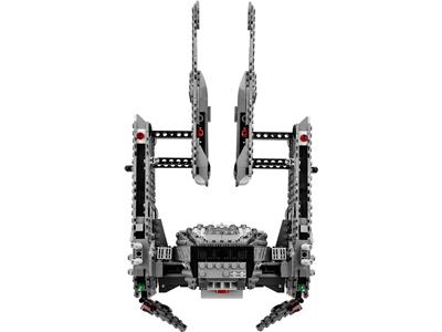Take command with Kylo Ren's personal shuttle, a highly detailed starship packed with action features. Open the front, rear, and bottom storage bays, fire wing-mounted spring-loaded shooters, and utilize detachable weapon racks. For maximum impact, activate the incredible extending wing function. Recreate thrilling battles from Star Wars: The Force Awakens with six minifigures: Kylo Ren, General Hux, a First Order Officer, two First Order Crew members, and a First Order Stormtrooper Officer. This buildable model measures over 11 inches high, 8 inches long, and 7 inches wide, and is compatible with all LEGO construction sets for endless creative play.