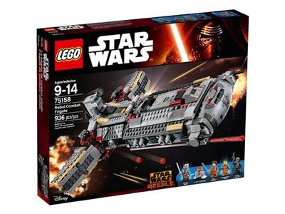 Join the Rebel forces aboard the Combat Frigate as Imperial Agent Kallus closes in! Prepare for battle by folding out the wings, loading the spring-loaded shooters, and arming the stud shooter. Take the lifting handle to maneuver the frigate and fire the weapons to fend off the Empire. Remove the upper cover to access the interior and play out adventures with Ezra Bridger, Ahsoka Tano, Commander Sato, and Chopper Astromech Droid. Arm your crew with Ahsoka's and Ezra's lightsabers, Kallus' blaster, and a wrench accessory. Will you escape to safety? The mission is in your hands.