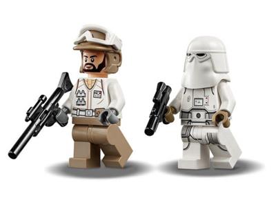 Build and play with a LEGO Star Wars Battle of Hoth construction toy, featuring two minifigures: a Snowtrooper and a Rebel Trooper. The set includes a tripod gun and a buildable power generator, both placed on a base with a target. It comes with two shooters and four missiles. Hit the red target to knock the Snowtrooper and tripod gun off the base, or hit the blue target to blast the power generator and send the Rebel Trooper flying. The power generator measures over 1 inch high, 5 inches wide, and 3 inches deep. The tripod gun measures over 1 inch high, 1 inch wide, and 2 inches deep.