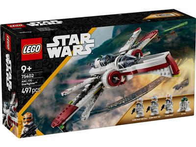 Recreate Star Wars: Revenge of the Sith missions with this ARC-170 Starfighter building toy (75402) for kids. A top LEGO Star Wars gift for fans aged 9 and up, the brick-built starfighter features 3 opening cockpits, 6 wings including 4 lever-operated adjustable wings for attack and cruise modes, and 2 spring-loaded shooters. The set includes 4 LEGO Star Wars characters: Clone Pilot Odd Ball, Clone Pilot Jag, and a Clone Pilot minifigure that can be placed in the cockpits, plus space for the R4-P44 LEGO droid figure. Kids can enhance their building experience with the LEGO Builder app, zooming in and rotating a 3D digital version of the starfighter. This vehicle and characters can combine with other LEGO Star Wars sets (sold separately) for more imaginative play.