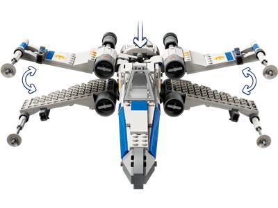 Soar into the galaxy with the LEGO Star Wars New Republic X-Wing Starfighter (75460). This buildable model captures the iconic starfighter's classic silhouette in the striking blue and white colors of the New Republic. Prepare for battle by stowing gear in the rear compartment, checking the engines, and placing the included New Republic Astromech droid behind the cockpit. Pilot the ship with your choice of the Colonel Ward or Carson Teva LEGO minifigure. Retract the landing gear, push the button to flip the wings into attack mode, and unleash the four stud shooters. An ideal gift for any Star Wars fan ages 9 and up, this detailed X-wing makes for an impressive display between daring missions. The building experience is enhanced with the LEGO Builder app, featuring interactive 3D instructions to zoom, rotate, and track your progress.