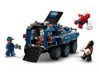 Ignite thrilling superhero missions with the Spider-Man Prison Transport Chase (76349), a dynamic playset designed for kids ages 8 and up. This action-packed set includes Spider-Man, Tombstone, Tarantula, and a DODC Guard, each equipped with unique accessories like hand-held webs, stud shooters, spiked limbs, and handcuffs for immersive role-play. The rugged, six-wheel transport vehicle features stud shooters, an opening roof hatch and rear door for cockpit and prison access, plus suspension for navigating rough terrain. With 367 pieces, it's an engaging building project and an exciting gift for any occasion. Enhance the experience with the LEGO Builder app for interactive 3D digital instructions.