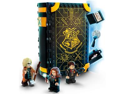 The LEGO Harry Potter Hogwarts Moment: Defence Class (76397) is a magical playset inside a brick-built book, designed for kids aged 8 and up. It includes Mad-Eye Moody, Hermione Granger, and Neville Longbottom minifigures, plus accessories like a blackboard, trunk, potion bottles, desk, and chairs. The classroom features built-in shelves and a fireplace, while other elements can be removed to expand the play area. The set connects with others in the collection and folds shut for easy storage and portability.