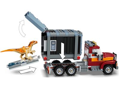 truck, cargo box, stickers, instruction and building only, no dino's, no figures no weapons |