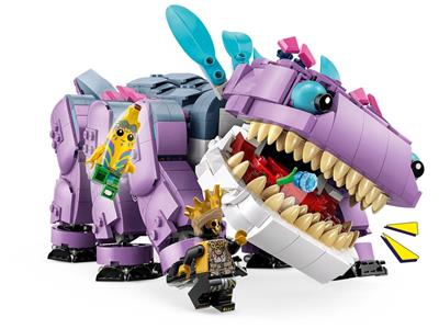 Build and befriend the iconic LEGO Fortnite Klombo with this detailed building set. Recreate the massive creature from the game, featuring movable legs, an opening mouth, and a rotating tail. Includes a Klomberry bush with detachable berries to act out feeding or agitating Klombo. Minifigures of Island Adventure Peely and Oro attach to his back for imaginative play. Comes with a digital bonus—scan the QR code to unlock the Island Adventure Peely Outfit in the LEGO Fortnite video game. A perfect gift for Fortnite fans and builders.