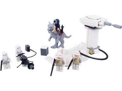 Celebrate a decade of LEGO® Star Wars by defending the Rebel base on the icy plains of Hoth! As Han Solo departs on his iconic tauntaun, Imperial snowtroopers launch an assault with a heavy repeating blaster. Rebel troopers must hold the line, manning a missile-firing defense turret and a trench with figure-flinging battle action. This set includes 2 Snowtroopers, 2 Hoth Rebel Soldiers, Han Solo in Hoth gear, and the first-ever LEGO Tauntaun!