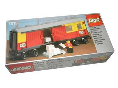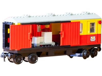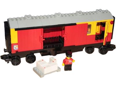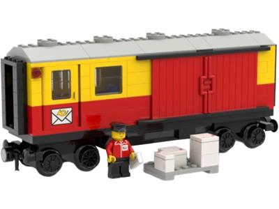A compact mail van featuring a functional sorting office and storage room, complete with a pallet loaded with parcels. Includes one figure and building instructions for both the main model and an additional bonus model.