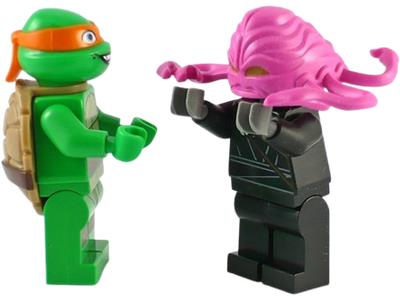 No instructions, missing Michelangelo and the head for the foot soldier. Missing 1 ea reddish brown 75c03 and 1 ea trans clear 50747. |