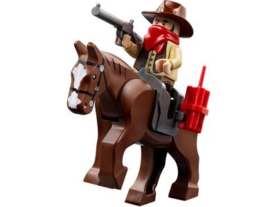 Join Red Harrington in the Stagecoach Escape as bandits target her precious silver locked in the vault. Toss baggage from the back to hinder the pursuers, then leap onto the galloping horses. Unhitch them from the wagon and team up with the Lone Ranger and Tonto to drive the outlaws away and protect the treasure. This set comes with five minifigures—the Lone Ranger, Tonto, Red Harrington, and bandits Jesus and Barret—all equipped with weapons and accessories.