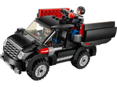 Join the Turtles as they speed to safety with April in the commandeered Big Rig, pursued by Karai and the Foot Soldiers in a sleek black SUV. With April holding on beside the driver, grab your weapons and climb to the roof to confront a Foot Soldier. Dodge incoming missiles and tip ooze barrels to block the path of your pursuers. After evading them, open up the truck’s sides and roof to reveal a fully equipped mobile lab inside. This set includes six minifigures—April O’Neil, Raphael, Leonardo, Karai, and two Foot Soldiers—each with weapons and accessories. The Big Rig features a detachable driver’s cabin with a removable roof, plus a mobile lab complete with an experimental machine, computer, and storage cupboard.