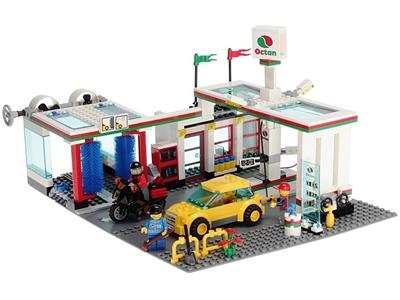 This bustling LEGO City Service Station keeps everything running smoothly with a working gas pump, spinning carwash brushes, and a roadside shop for snacks. A customizable road baseplate anchors the action, while a price board, car, motorcycle, and three minifigures invite endless driving, fueling, and washing play.