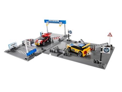 Take on the ultimate icy challenge with this frozen rally track! Unfold the plastic storage container to reveal a frosty racing plate complete with a finish line, obstacles, and racing accessories. Two rally racers are included, each measuring 3.5" (9cm) in length, ready to battle it out in a race to the frozen finish. Expand the excitement by combining with #8125 Thunder Raceway and #8126 Desert Challenge to create an even larger track.