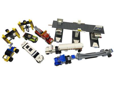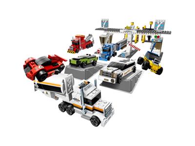 Race your Tiny Turbo cars using slammers and ramps to launch them over the highway toll station. Compete to see which car can jump the farthest, or crash them into the tractor trailers and use the tow truck to clear the wreckage. This set includes two street cars, an off-roader, a limousine, a tow truck, and two tractor trailers, plus two slammers and two ramps for high-speed action.