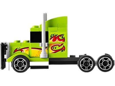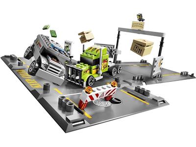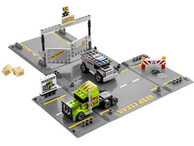 Unfold the storage box to reveal a high-speed racing scene! An armored car faces unexpected challenges when a green super-truck racer smashes into it, putting the crooks' escape at risk. This set includes both the armored car and the super-truck racer. Combine with other LEGO® Racers fold-out sets to create an even larger chase scene, then easily fold everything back into the box for storage.