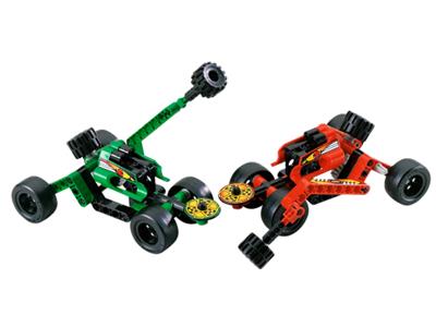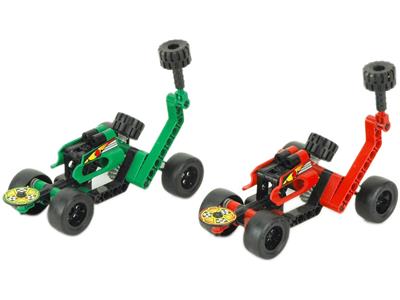 Complete with all pieces, marked incomplete due to missing almost all stickers from green car build. Stickers poorly placed/peeling. Rubber wheels slightly sticky due to age, red 6553 pieces are discolored. No box, instructions have significant wear. |