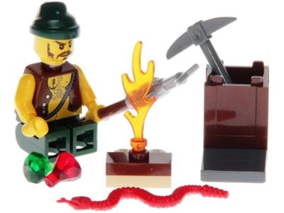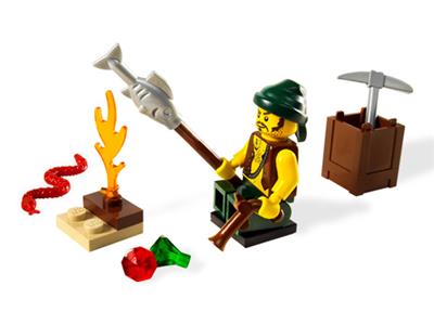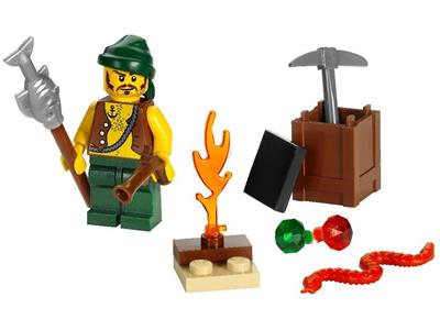 Stranded on a remote island, this resourceful pirate must use his wits to survive. He builds a fire for warmth, fishes for food, stays alert for snakes, and hunts for buried treasure with his pickaxe. The set includes a pirate minifigure and essential survival gear: a revolver, a sturdy stick, a fish, a snake, two gems, and a handy storage box. With 16 pieces, it's a compact adventure full of pirate spirit.