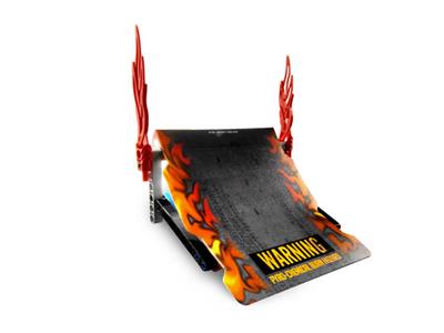 Will you soar to new heights or face a fiery crash? Pull back the Red Ace and release to send this blazing fast Power Racer speeding up the ramp and soaring into the air!