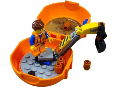 Build and play on the move with Emmet’s Construction Pod from THE LEGO® MOVIE 2™. This compact, orange pod features a lenticular sticker on the front that shifts between Emmet’s face and the movie logo when viewed from different angles. Inside, you’ll find an Emmet minifigure, a built-in ‘construction site’ baseplate, a small excavator to assemble, and rubble pieces for imaginative building. The pod is portable and measures just over 2 inches (6 cm) high, 2 inches (6 cm) wide, and 1 inch (3 cm) deep.