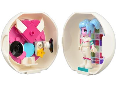 Party on the go with Sweet Mayhem's Disco Pod! This portable pod lets you build and role-play a party anywhere. The pod features a striking lenticular image on the outside—tilt it to see either Sweet Mayhem's head or The LEGO Movie 2 logo. Inside, you'll find a Sweet Mayhem mini-doll figure, a buildable DJ mixer, a detachable heart-shaped flyer, a mounted multicolored disco dance floor sticker, and assorted elements to create a fun party atmosphere. The pod measures over 2 inches high, 2 inches wide, and 1 inch deep.
