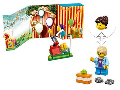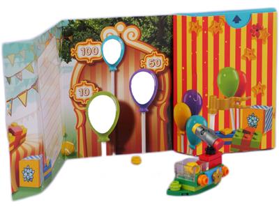 Surprise a special person with this LEGO® Iconic 853906 Greeting Card. Fold out the printed card to create a colorful balloon-shooting stall, then build the spring-loaded shooter to play the game! Also includes a minifigure with interchangeable heads to make a boy or girl.