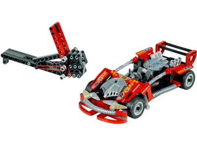 Experience the thrill of high-speed racing with this slammer-powered racer, equipped with glow-in-the-dark headlights for nighttime competitions. Launch it down the track and see it race to victory. Transform the Furious Slammer Racer into a rugged truck designed for street racing, with building instructions provided for this alternate model.