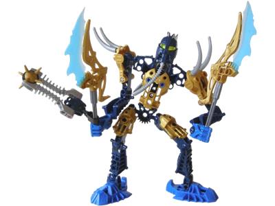 A seasoned champion of the Water Tribe, Tarix enters the arena armed with twin translucent blades and a functional Thornax launcher. His articulated form allows for dynamic posing, while his detailed design features a water-inspired mask and golden accents. This respected Glatorian comes with a life counter for the battle game and stands ready for display or play.