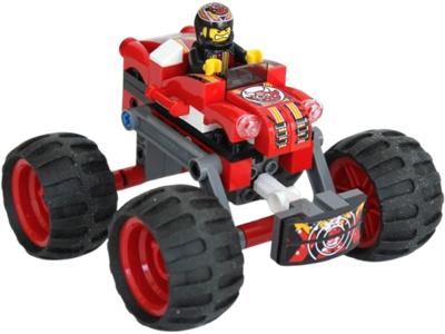 Devon Daredevil commands his formidable Crazy Demon monster truck, built to dominate the Monster Truck Arena. This set captures thrilling crashes, launching the minifigure from the cab upon impact. With oversized wheels and an eject function, the truck is designed for high-octane action. Rotate Devon's head to switch between determined and surprised expressions, adding to the dynamic play. The rugged vehicle measures over 4 inches long, 3 inches high, and 3 inches wide, ready for any arena challenge.