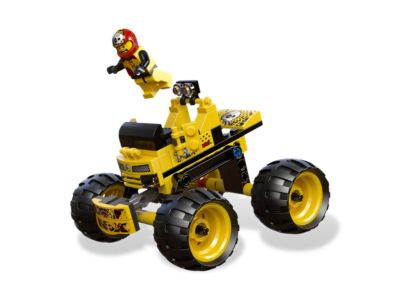 Motor Mike hits the arena in his rugged yellow Bone Cruncher monster truck, ready for serious racing action. Watch out—he gets ejected on impact with obstacles and other trucks! This set includes the Motor Mike minifigure with a turnable head that reveals different expressions. With giant wheels and an exciting eject function, the truck measures over 4 inches long, 3 inches high, and 3 inches wide.