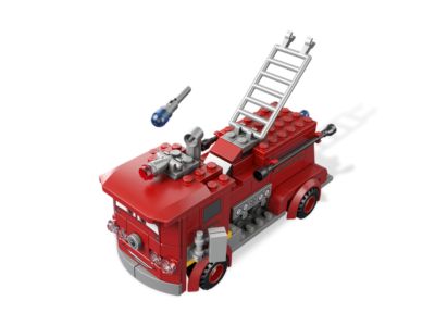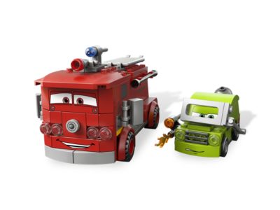 Red is on a critical mission to rescue Lightning McQueen and Mater from their capture in London. First, he must stop Professor Z's henchman, Acer, who is setting the city ablaze. Use Red's water gun to extinguish the fires and foil Acer's destructive plans. This set includes detailed minifigures of Red and Acer, featuring flick missiles, an elevating ladder, welding equipment, and protective glasses. Red measures over 5 inches (14 cm) long, while Acer measures over 3 inches (9 cm) long. Expand your adventure by collecting all the LEGO® Cars™ sets!