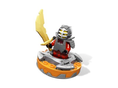 Master the art of Spinjitzu with Kendo Kai! Spin him on the orange fire spinner to unlock his skills, then power him up with the silver crown. Test his training against the snake tail obstacle to release six weapons. This set includes the Kendo Kai minifigure, fire spinner, crown, weapons, a character card, four battle cards, and the snake tail training arena. Collect all the spinners for endless Ninjago battles!