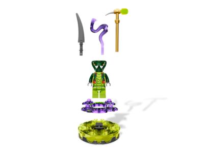 Spin to win as Spitta, ready to battle the Spinjitzu masters with powerful weapons and a custom green transparent spinner topped with a purple snake crown. This set includes a Spitta minifigure, golden and regular weapons, building bricks, a character card, and four battle cards to change the fight. Challenge friends, spin to victory, and collect more Ninjago spinners for nonstop action.