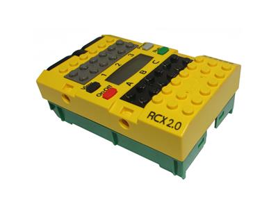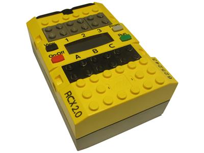The RCX is a programmable microcontroller designed as the central processing unit for robotics projects. It executes programs created on a PC, enabling control of motors and data collection from various sensors. The unit features three analog/digital input ports for sensor connections and three variable output ports for motor control. Power is supplied by six AA batteries (1.5V each) or an optional 9V transformer (sold separately, reference 9833). It can store up to five distinct programs, each supporting up to 1,500 instructions. The hardware includes a Hitachi processor with 16K ROM, 512 bytes of SRAM, and an additional 32K SRAM. Additional features include a built-in speaker for audio feedback, a timer function, and wireless communication capabilities for linking multiple RCX units together.
